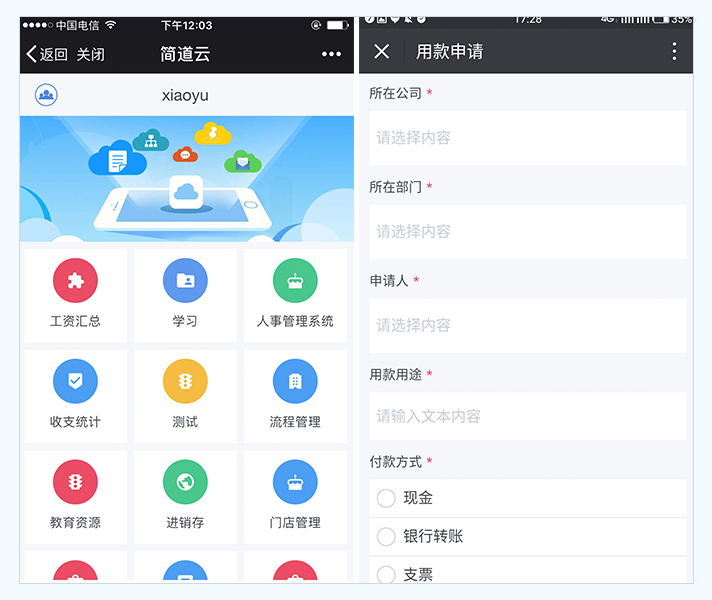 差別于傳統(tǒng)OA、CRM等具備固定功能的軟件,用戶可通過(guò)簡(jiǎn)道云自由地設(shè)計(jì)應(yīng)用功能,并綁定應(yīng)用到釘釘/微信/企業(yè)微信,不下載APP即可在手機(jī)上錄入、查詢(xún)、協(xié)作、分析數(shù)據(jù)。