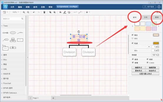 將思維導圖的素材添加到編纂?yún)^(qū)域后,可以在素材上添加文本內(nèi)容。只需要選中圖形素材,即可在其中輸入文字內(nèi)容。若是需要對文字格式進行編纂,選中文字內(nèi)容后,在左側的“文本”版塊中,即可對文字的顏色、樣式等等進行設置。