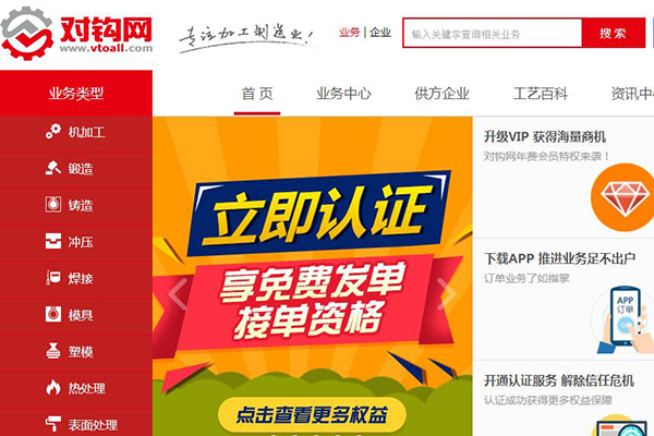其中,對鉤網(vtoall.com)作為國內專注于外協加工的B2B電子商務平臺,充分發揮“互聯網+制造業”的優勢,將傳統的外協加工方式進行了革新,構建了全新的外協加工市場秩序。在這里,機械加工需求商可以通過平臺發布需求,進行資金擔保交易,開發優質供應商;機加工廠可以通過平臺承接訂單,充分利用閑置產能,為企業的長遠發展提供有力助推。