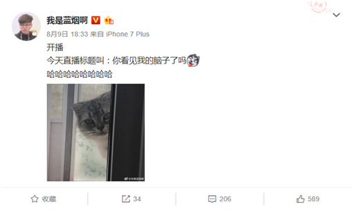觸手直播《王者榮耀》頂尖技術主播藍煙,如果沒有偶遇《王者榮耀》和觸手直播,他應該會是一枚妥妥的優秀鏟屎官。不信?請看他微博,除了游戲和直播,就是秀他們家的貓。