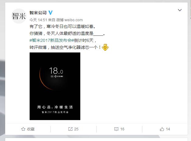 按照小米生態(tài)鏈企業(yè)智米科技的宣傳海報提示,發(fā)布的新品以“用心品,冷暖生活”為主題,還有電加熱的圖標。同時官方還配文提示“有了它,寒冷冬日也可以溫暖如春。”