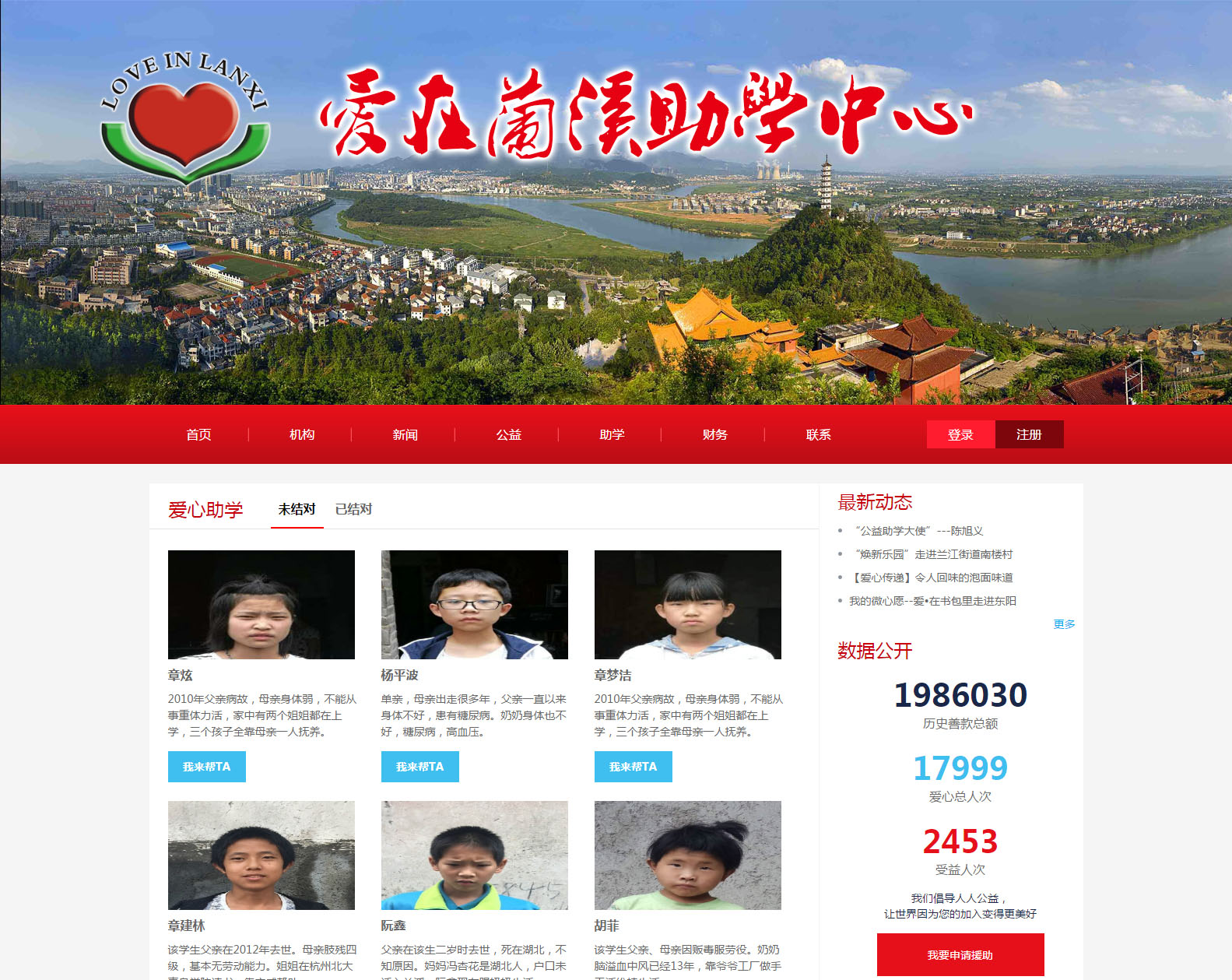 “讓愛心陽光照亮知識之路,讓慈善陽光普惠莘莘學子。”關心經濟困難學生是一項長期的慈善公益工程。當陳旭義看到愛在蘭溪助學中心的發展瓶頸后,他建議并出資建立開發全新的網絡公眾平臺和網站。新的網站采用個性化設計,參照以往的工作經驗和困難項進行優化而成,基本做到了自動化對接和數據升級,是目前國內走在前茅的一個助學網站(),有效的促進了“圓夢助學”幫資結對工作。
