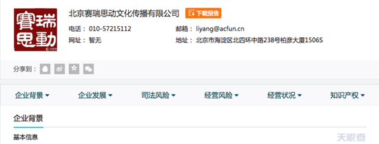 在對外公開的公告和所有的媒體報道中,,AcFun都是沒有《信息網絡傳播視聽節目許可證》的。但其實AcFun的CEO孫旻創立的北京賽瑞思動文化傳播有限公司旗下有一家名為游藝星際(北京)科技的公司持有該牌照。同時,北京賽瑞思動文化傳播有限公司和游藝星際(北京)科技有限公司至今在工商信息中的聯系人郵箱還是acfun.cn后綴。
