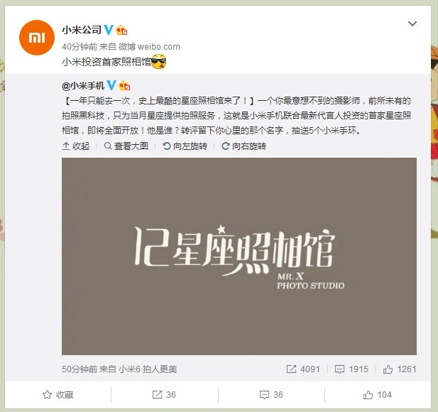 巨人網(wǎng)絡(luò)通訊聲明:本文標(biāo)題《史上最酷?小米投資首家星座照相館,一年只能去一次》,本文關(guān)鍵詞 史上,最酷,小米,投資,首家,;如發(fā)現(xiàn)本文內(nèi)容存在版權(quán)問(wèn)題,煩請(qǐng)?zhí)峁┫嚓P(guān)信息告之我們,我們將及時(shí)溝通與處理。本站內(nèi)容系統(tǒng)采集于網(wǎng)絡(luò),涉及言論、版權(quán)與本站無(wú)關(guān)。