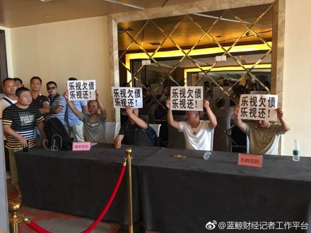據了解, 在股東會召開前,在會議舉行的北京市朝陽區伯豪瑞廷酒店,,樂視供應商舉著“樂視欠債樂視還”的口號討債。部分供應商堵在會議室門口的供應商們喊著“賈躍亭!出來!張巍!出來!”他們體現,本身只想要個說法,已經來北京兩個多月,樂視一直未給回復。
