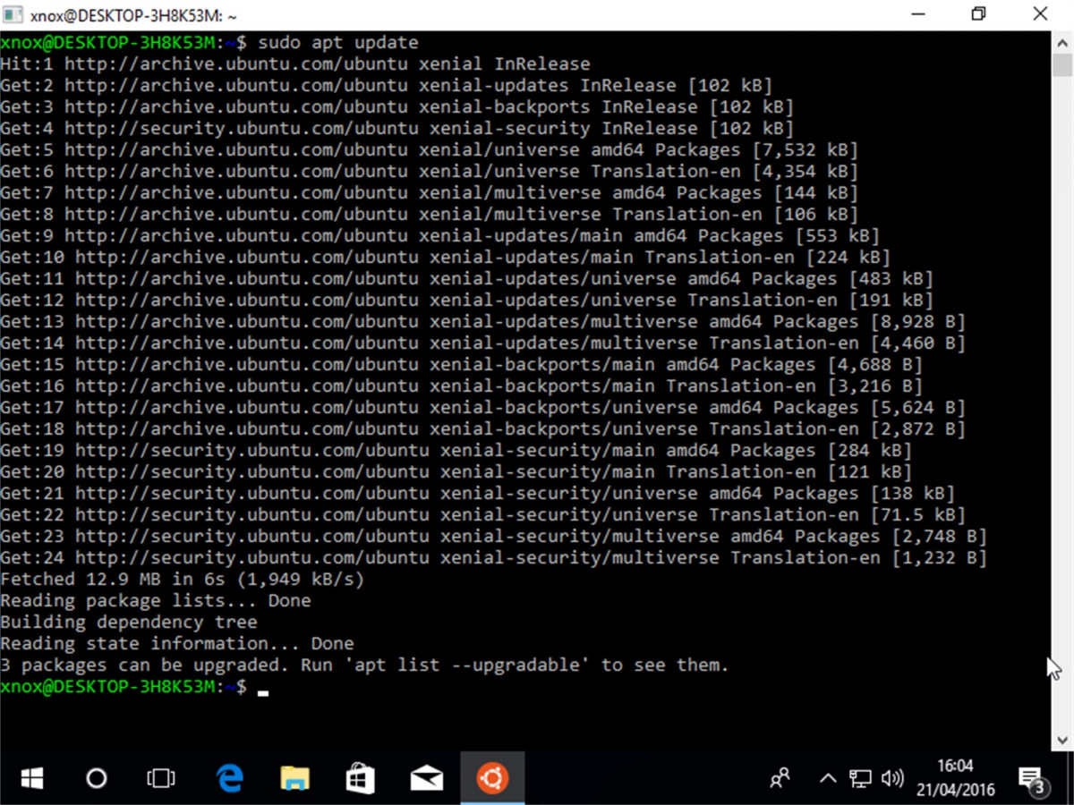 微軟應用商店的最新版本是 Ubuntu 16.04 LTS。它支持與 Windows 10 一同以沙箱形式運行,同時支持獨立安置常規命令行實用程序,并可通過 Windows 10 進行文件與硬件共享拜候。