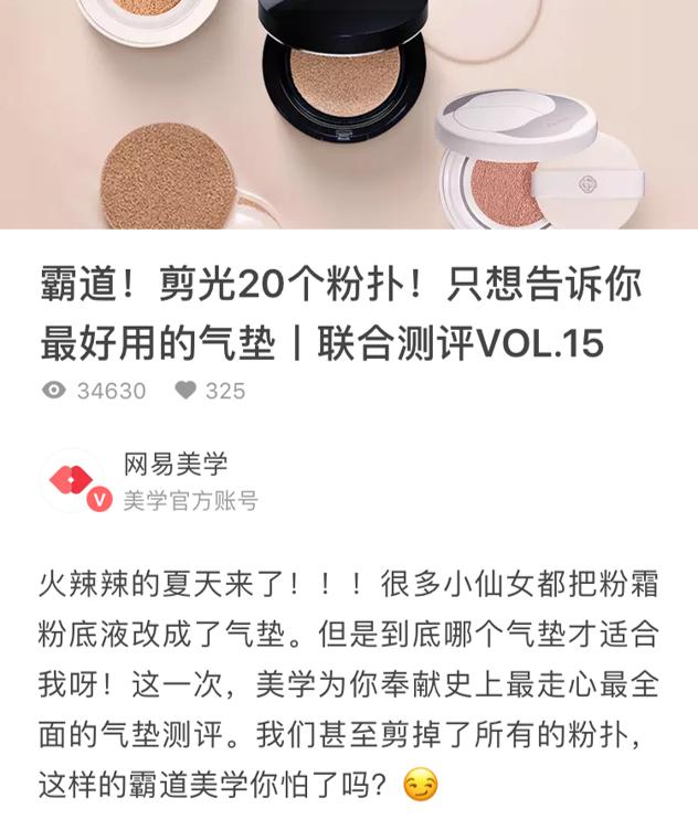 近日,網易美學的聯合測評頻道更新了一篇名為《蠻橫!剪光 20 個粉撲!只想告訴你最好用的氣墊》的官方測評。因獨具針對性的評測角度,加之暴力且全面的評測方式,這篇干貨滿滿的評測引起了美妝界的熱議。