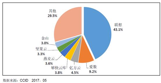聯想憑借品牌優勢、產品性能、數據安適、核心技術創新、完善辦事體系和客戶資源始終連結行業的領先地位,穩居市場第一,聯想市場份額達到43%,領先優勢明顯。夠快云庫、燕麥云、堅果云等專注于數據存儲與共享的辦事商持續關注企業網盤市場,市場地位相對不變。