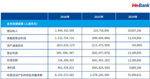 微眾銀行2016年凈利潤達4億元,2015年凈虧損5.8億元。