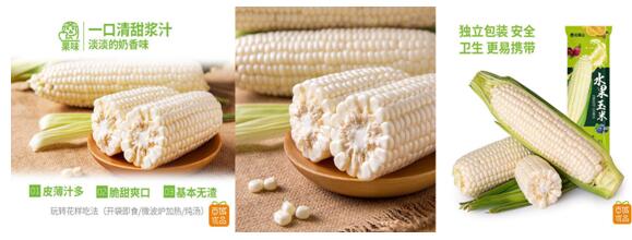 可以直接生吃來自氣候濕潤的福建漳州可以直接生吃的水果玉米。其顆粒飽滿、色澤瑩白似珍珠,18°的糖度比一般玉米更高使其香甜可口,薄薄的皮一咬就破,一股淡淡的香味,