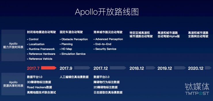 對于Apollo計劃所提供的各種能力和資源,百度已經明確到給出了具體的時間表。