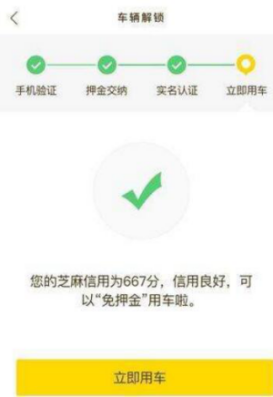 據介紹,自 7 月 5 日起,深圳、廈門的ofo小黃車用戶通過手機APP成功注冊后,會自動進入到“押金繳納”的界面,下方會自動出現“芝麻信用 650 分免押金”和“交押金”兩個選項,芝麻信用在 650 分及以上的用戶,可點擊“芝麻信用 650 分免押金”的按鈕,即可使用ofo小黃車。