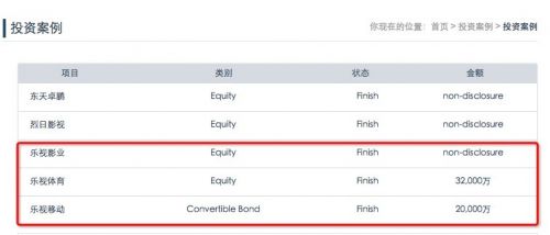 藍巨投資官網顯示,藍巨投資是樂視汽車、樂視影業、樂視體育、樂視移動的投資方。此次傳出的易到其中一個接盤者TO WIN Global也是藍巨投資的投資對象。