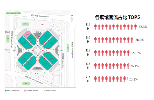 2) 極光大數據監測發現,8.1H館 在 4 月 21 日~ 28 日,共吸引參不雅觀不雅觀眾27. 2 萬人次,占同期總客流量的32.3% ,各展館客流中排名第一