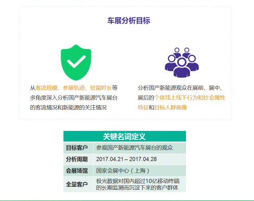 2) 極光大數據實時監測參不雅觀新能源汽車展臺客戶的移動終端,對目標客群的畫像分析和線下看車行為特征進行分析,全面評估會展營銷效果