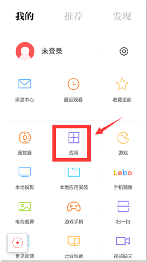 第三步:手機與盒子連接完成之后,在阿里TV助手首頁找到“應用”選項,點擊進入。