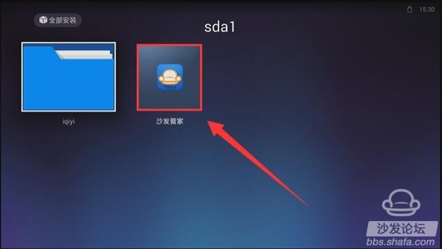 3、進入文件列表界面,可以看到沙發管家的安置包,移動遙控器到沙發管家圖標上,按OK鍵確認安置。