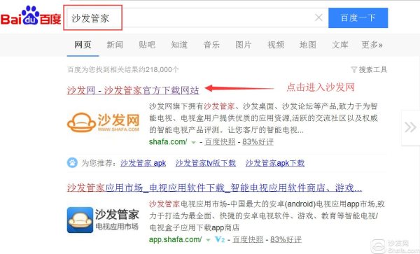 【安置流程】方法一:通過U盤安置①下載沙發管家安置文件到U盤→②U盤插入天貓魔盒USB接口→③當地播放打開安置文件→④安置成功1、百度搜索“沙發管家”,點擊排名第一的搜索結果進入沙發網()。