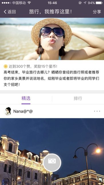名為“悠然的貓”的易信網(wǎng)友在“曬一曬”中向大家保舉了麗江古城并留言:“去麗江游玩一直是我們宿舍4個姑娘的夢想,平時因?yàn)槁烦踢h(yuǎn)一直沒有機(jī)會,結(jié)業(yè)后大家就各奔東西了,所以必然要趁著結(jié)業(yè)前的最后機(jī)會約上好伙伴一起嗨皮!”