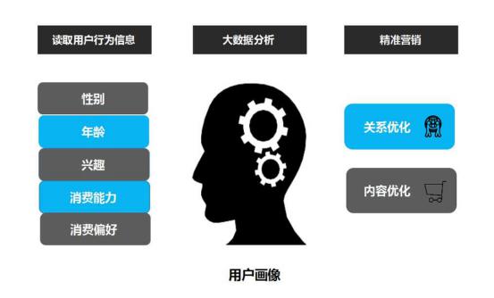 好比消費者掃碼的場所,是在小賣場還是大商圈,消費者購買的種類,頻次,關注的信息等行為,都可以通過數據的采集,進行整理,通過大數據的分析,進而勾勒出用戶的性別、年齡,受教育程度、消費水平、消費偏好等用戶畫像,從而讓我們的眼前用戶畫像更加具象和生動,進而準確捕捉到用戶的消費痛點,進行精準營銷。