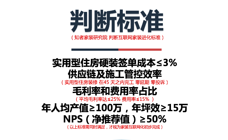 家裝互聯網化是個漫長的過程,核心是提升效率,與傳統裝修素質的區別也是效率,包孕獲客效率、轉化效率、交付效率、辦事及問題處理效率等。不能因為大家沒做好,用一個階段去否定互聯網家裝的價值,當成是概念,覺得過時了,沒熱度了,再炒個新概念?這有什么意義呢?不看素質,看概念;不看階段,看結果。