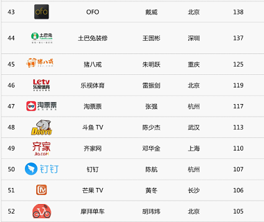估值是衡量創新型企業發展前景的重要指標,ofo小黃車在估值上一直連結行業領先地位。本年 3 月,在界面新聞發布的 2017 年創業估值榜中,ofo排名總榜第 43 名,擊敗第 52 名摩拜單車。ofo估值為摩拜1. 3 倍之多,奪得共享單車“頭把交椅”。