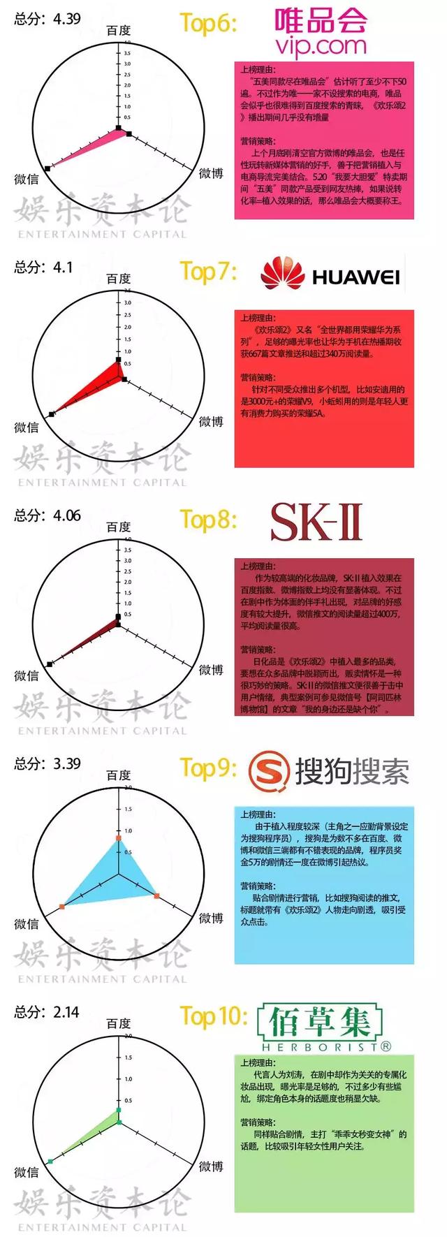 結(jié)果發(fā)現(xiàn),同是植入,效果卻有天壤之別,甚至還有越植入流量越低的情況。不久不多說,娛樂本錢論還是直接上榜單吧,給各位讀者姥爺看看本次《歡樂頌2》品牌植入Top10,以及倒數(shù)Top5。