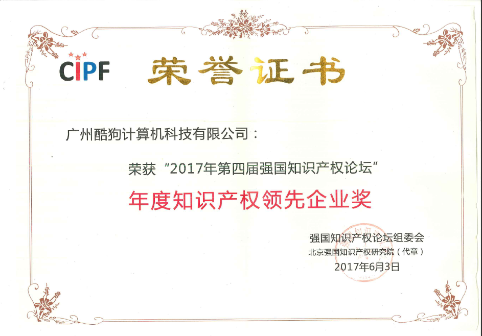 6 月 4 日,為期三天的 2017 強國知識產(chǎn)權論壇在國家會議中心落下帷幕。酷狗音樂以近 500 項技術專利的創(chuàng)新成果在論壇舉辦的頒獎典禮上榮膺“年度知識產(chǎn)權領先企業(yè)”稱號。該獎項旨在深度挖掘我國優(yōu)質創(chuàng)新企業(yè)和優(yōu)質辦事,為在知識產(chǎn)權建設領域做出突出貢獻的團隊及個人頒布。