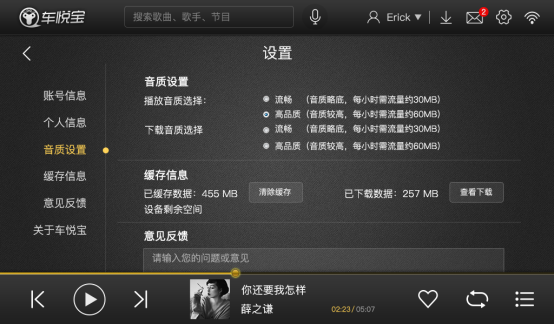 高品質音效可如春雨綿綿,可如夏日蟬鳴,聆聽真實的自然之音。車悅寶3.1版本全新加入了音質設置功能,暢聽更加流暢,流量更省心。