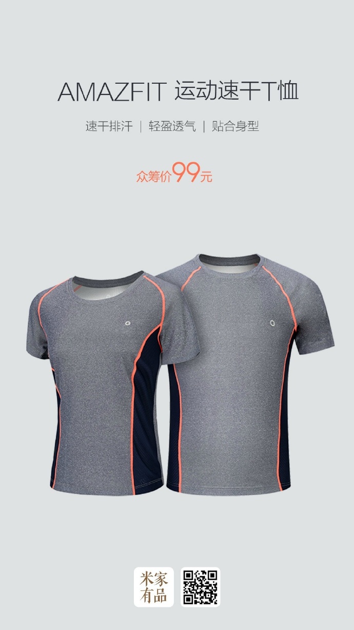站長之家(Chinaz.com) 6 月 6 日消息 今天早上,小米眾籌上線了第 86 期產品:AMAZFIT 運動速干T恤,該產品主打速干排汗、輕盈透氣、貼合身形等特點,眾籌價 99 元。