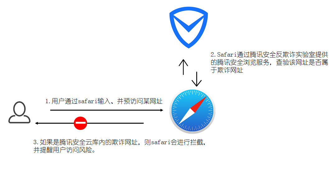 (圖:Safari瀏覽器內置騰訊安適云庫能力,實現欺詐網址識別功能)