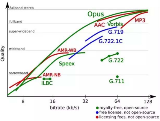 OK,這張讓人看了想吐血的坐標圖,意思是,Opus語音音質上超越目前你能用到的所有通話、視頻(或具備通話、視頻功能的)產品。