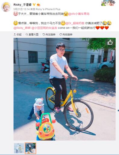 近日,有一位青島奶爸,騎著小黃車溜娃曬照,也加入到“小黃車影集”里,秀了一把奶爸版ofo腿,并呼吁大家一起低碳出行。更是選擇了一個特殊的13: 14 分發微博,一邊曬娃,一邊以“一生一世”評釋ofo小黃車,一幅小黃車親子出行記畫面溫馨至極,滿屏的愛意快溢出來了。不得不說,小黃車的圈粉能力很強勢,比擬美女or寶媽,一向會比較低調的奶爸也開騎小黃車曬娃。