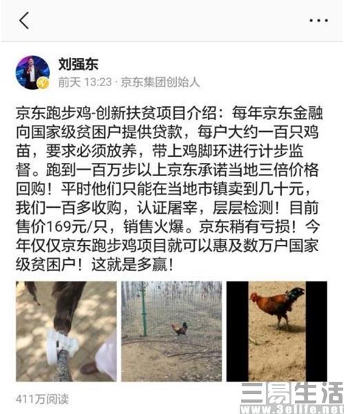 近日,劉強(qiáng)東在頭條號(hào)上曬出了京東跑步雞的扶貧項(xiàng)目介紹,劉強(qiáng)東提到,京東養(yǎng)的跑步雞要求必需放養(yǎng),而且每只雞的腳上都有計(jì)步器監(jiān)督,跑夠一百萬步以上的雞,京東承諾以本地三倍的價(jià)格回購(gòu)。