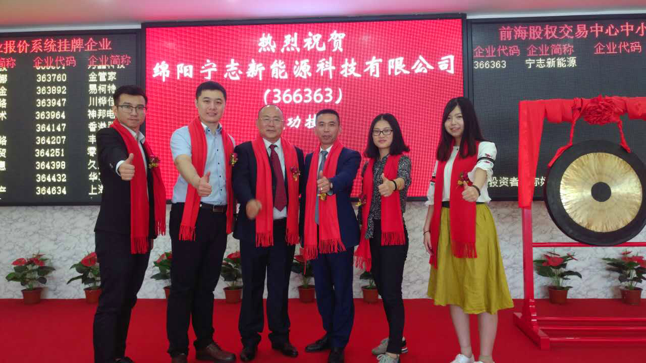 2017 年 5 月 25 日13:00,綿陽寧志新能源科技有限公司(以下簡稱寧志新能源)在東方融資網的傾力保舉下,在前海股權交易中心成功掛牌,股權代碼366363。