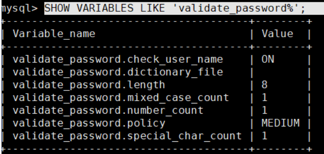 注意:官方源中安裝的mysql默認安裝了密碼安全檢查插件(validate_password),默認密碼檢查策略要求密碼必須包含:大小寫字母、數字和特殊符號,并且長度不能少于8位。否則會提示ERROR 1819 (HY000): Your password does not satisfy the current policy requirements錯誤,本文不推薦修改默認的密碼安全策略