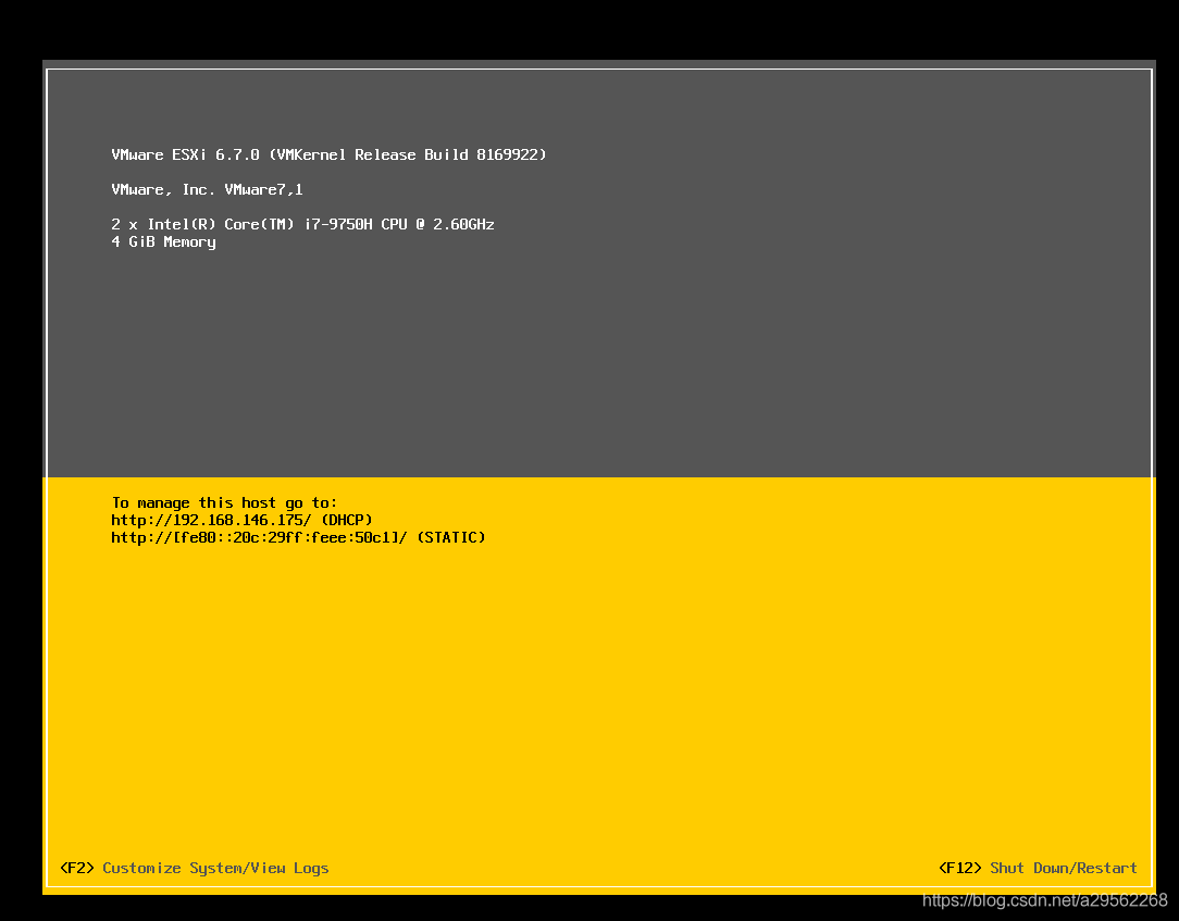 此時此刻,ESXi服務器可以正常訪問,按“F2”鍵可以修改部分配置,按“F12”鍵可以選擇重啟或關機,參考圖27: