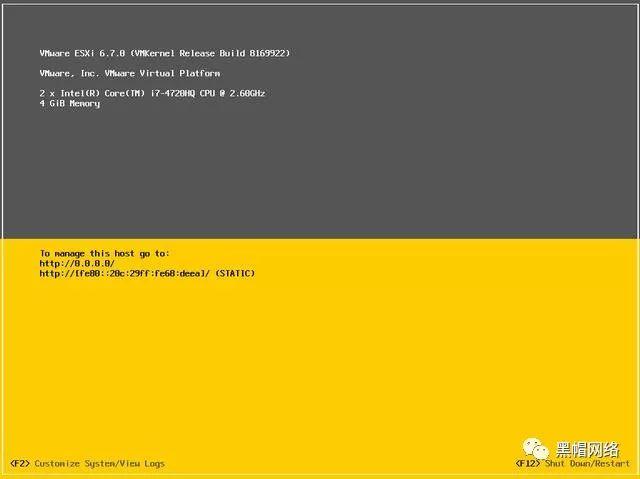 重啟之后,剛才祼機(jī)硬盤(pán)中的已經(jīng)有了ESXi系統(tǒng),ESXi服務(wù)器全文本界面,因?yàn)檎鎸?shí)的環(huán)境下我們平常基本很少需要在這臺(tái)服務(wù)器上進(jìn)行操作,有關(guān)的操作如創(chuàng)建管理虛擬服務(wù)器等,都可以在瀏覽器/vSphereClient上進(jìn)行(6.5之后官方開(kāi)始推薦直接瀏覽器界面配置了); 不過(guò)在此之前,我們需要對(duì)ESXi的網(wǎng)絡(luò)進(jìn)行一些配置,vSphere Client對(duì)其的控制也是通過(guò)網(wǎng)絡(luò)進(jìn)行的,我們必須事先為ESXi配置好訪問(wèn)IP。