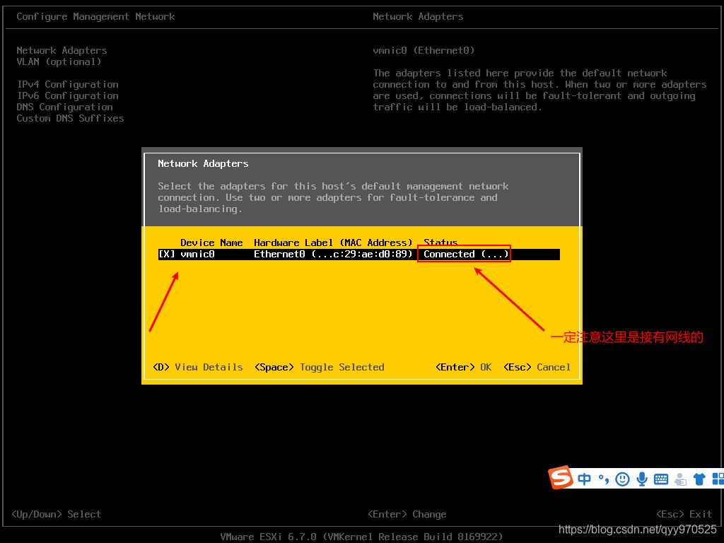 16.首先我們配置網絡適配器,上下鍵移動,空格選中目標,回車確認,自動返回網絡配置頁面