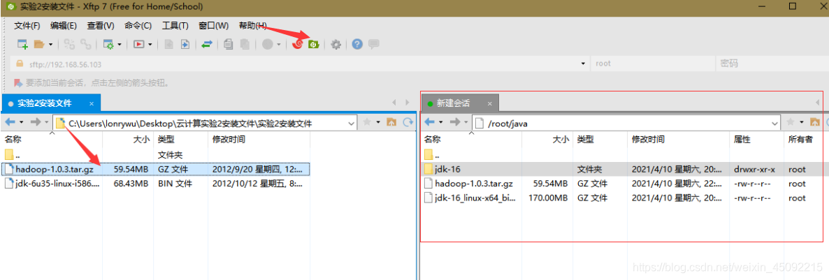 主要作用是用Xshell 7進行虛擬機各項操作,用Xftp 7將本地的jdk及hadoop安裝包傳輸到虛擬機上
