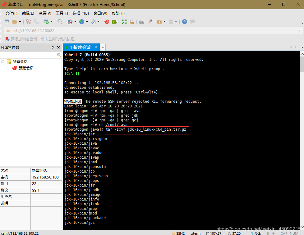 使用如下命令開始解壓jdk壓縮包