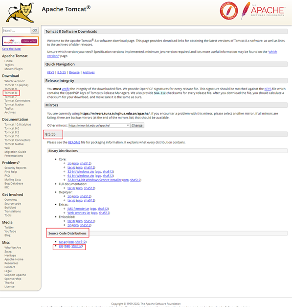 一、下載tomcat源碼,選擇tomcat-8.5.55版本