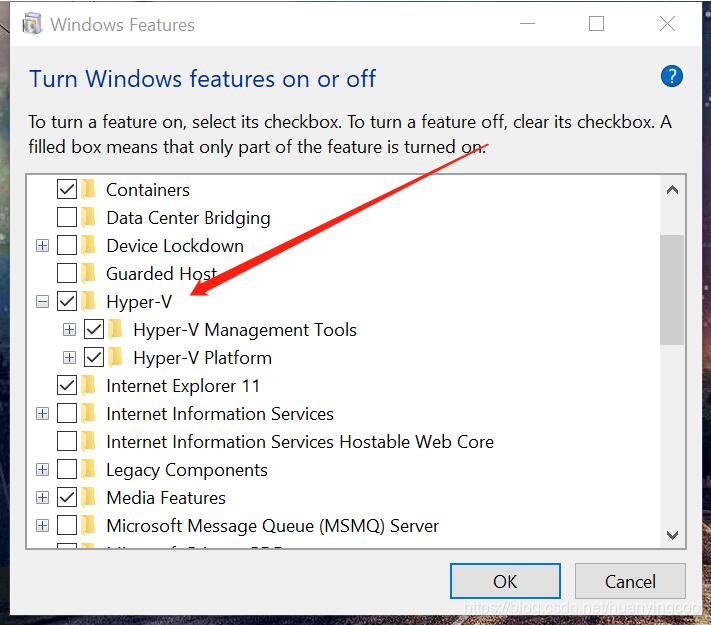 通過切換windows features選項開啟或者關閉Hyper - H選項,選中狀態下可啟動docker應用