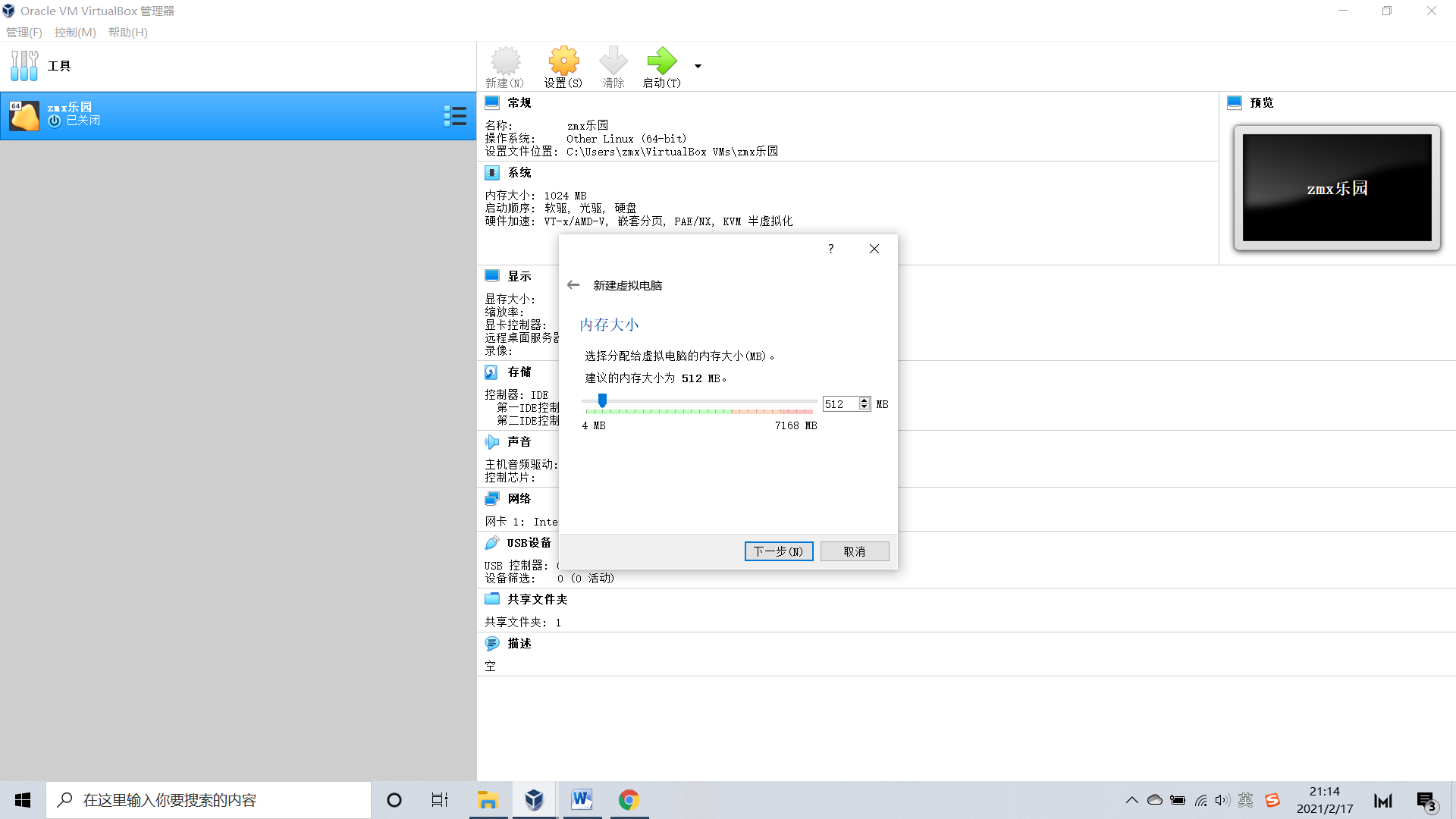 點擊下一步,為虛擬機分內存,推薦1G~2G,我這里只是做示范,所以直接默認了。