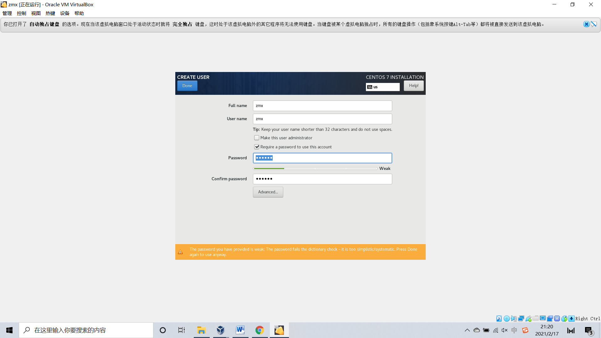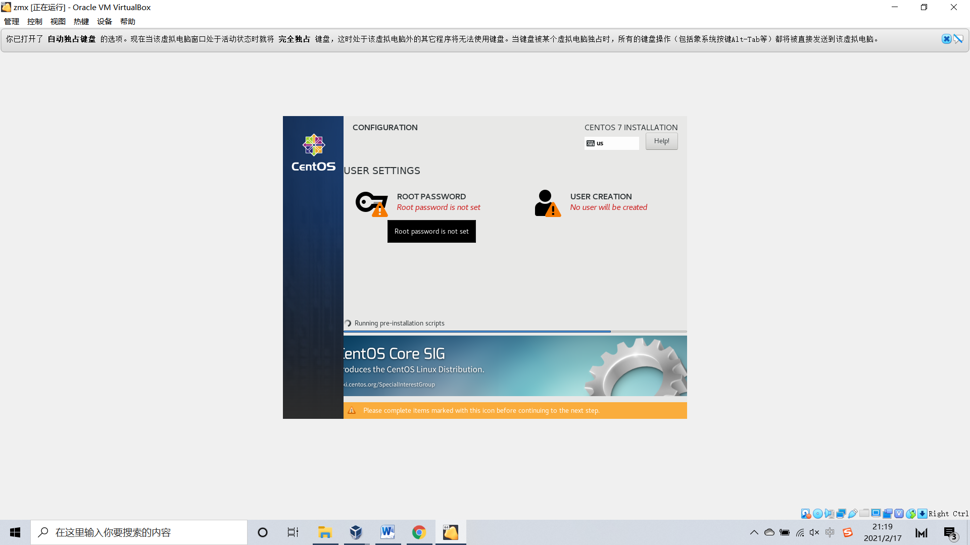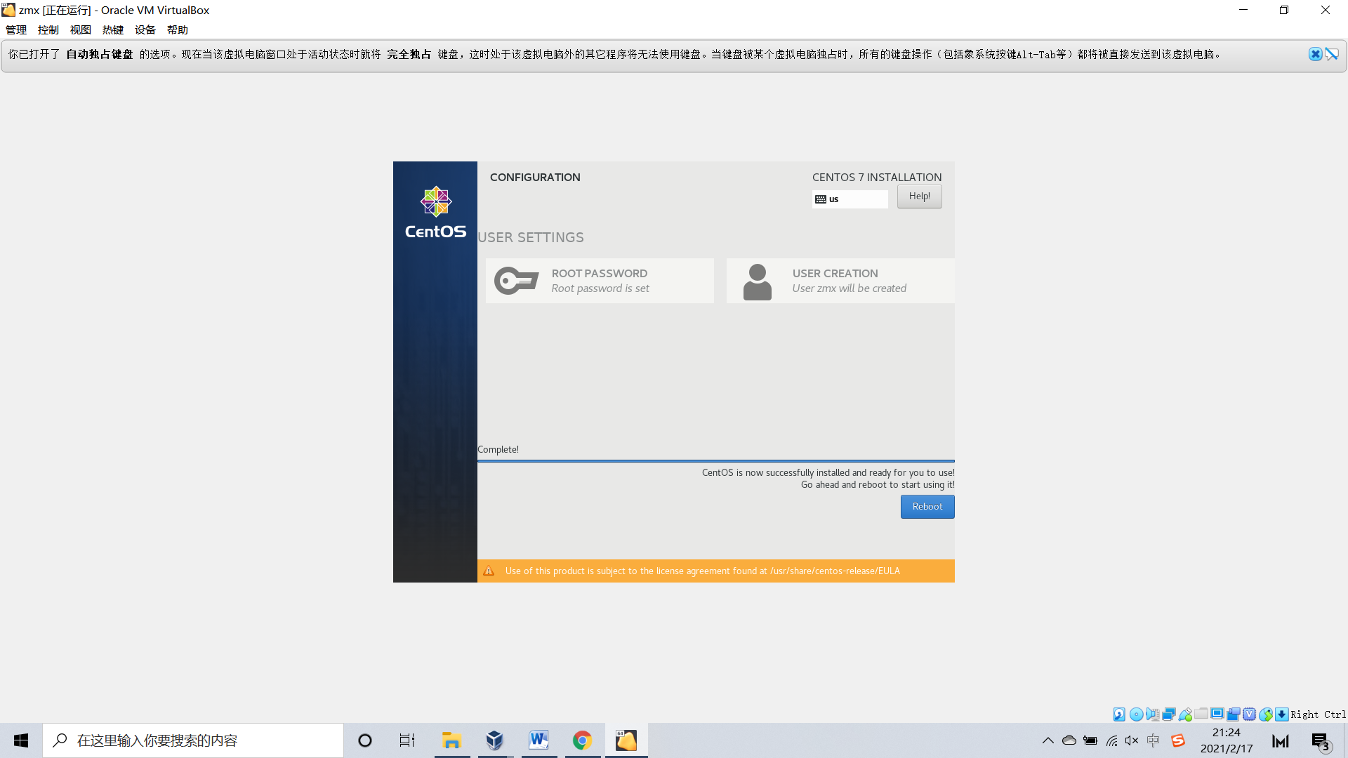 到這里centos7已經安裝完成。不過這臺虛擬機還沒有聯網,許多豐富的功能我們還用不到,當務之急,自然是先聯網。