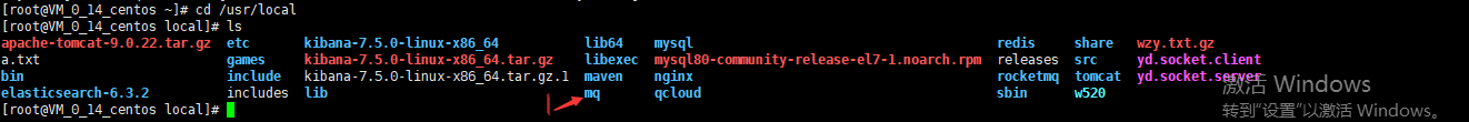 在/usr/local 目錄下新建文件夾 mq