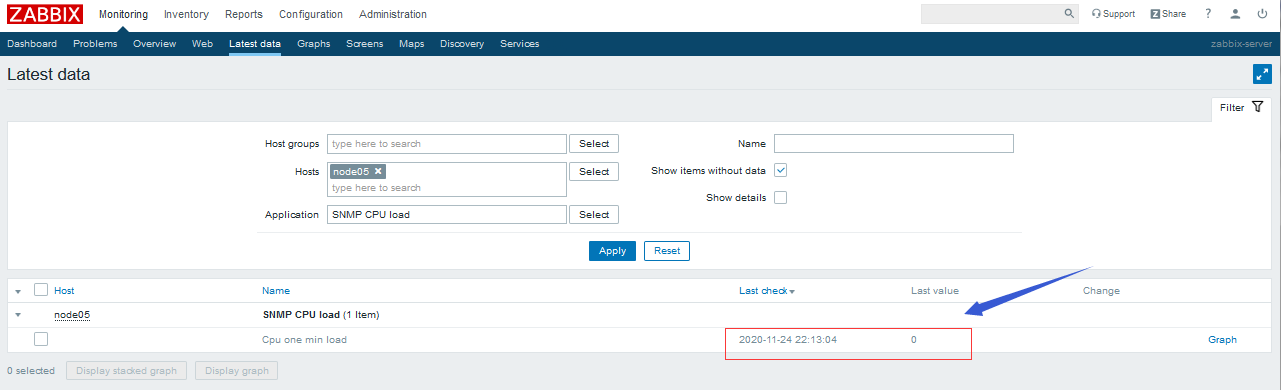 查看是否采集到對應模板上的監控項數據呢?