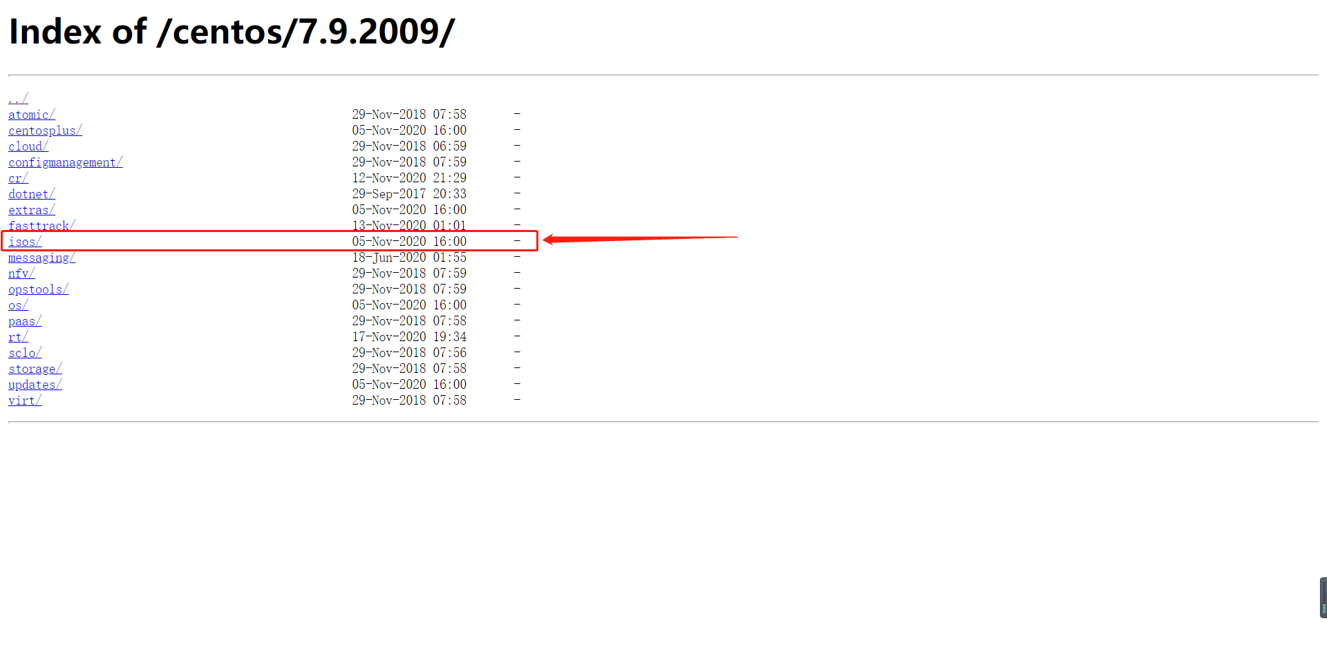 1.2 選擇相應(yīng)版本,如:7.9.2009;注意:該倉庫地址不對較老版本鏡像進(jìn)行保留,若需要請通過官方地址https://www.centos.org/download/進(jìn)行下載