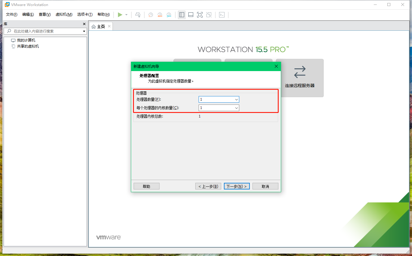 2.6 在新建虛擬機(jī)向?qū)?/code>的第五步選擇虛擬機(jī)處理器配置