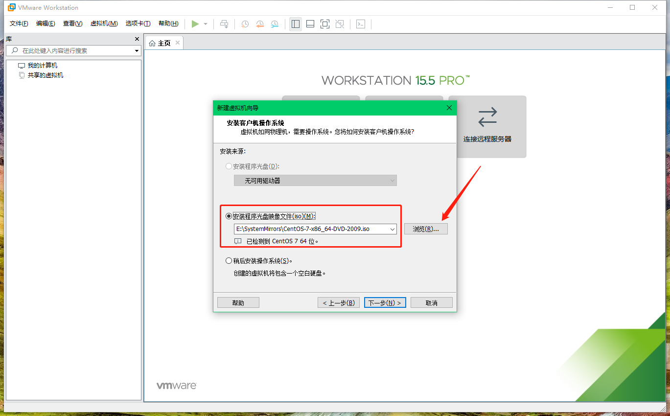 2.4 在新建虛擬機(jī)向?qū)?/code>的第三步選擇剛剛下載好的CentOS7系統(tǒng)鏡像文件